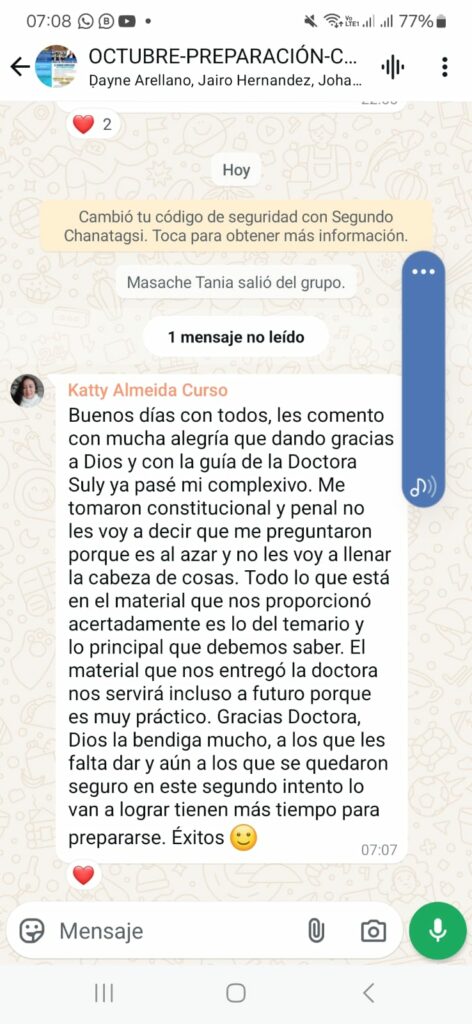 La Abg. Sulay Guamingo Cáseres te acompaña en el camino hacia la excelencia académica y profesional. Accede a nuestros cursos especializados y descubre una forma efectiva de estudiar para aprobar tus exámenes y desarrollar una carrera brillante en el mundo del derecho.